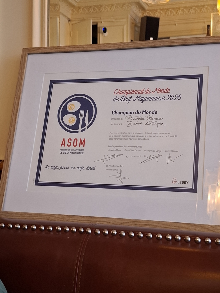 Il a en outre l’avantage d’avoir décroché le titre de « Champion du Monde de l’Œuf Mayonnaise 2026 »